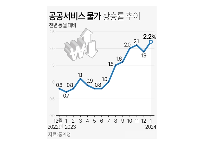 택시 18%·시내버스 11.7%↑…외래진료비도 2%↑​물가안정을 위한 정부의 공공요금을 동결기조에도 공공서비스 물가 상승세가 연초부터 이어지고 있다.26일 통계청 국가통계포털(KOSIS)를 보면 지난 1월 공공서비스 물가지수는 104.79로 1년 전보다 2.2% 상승했..
